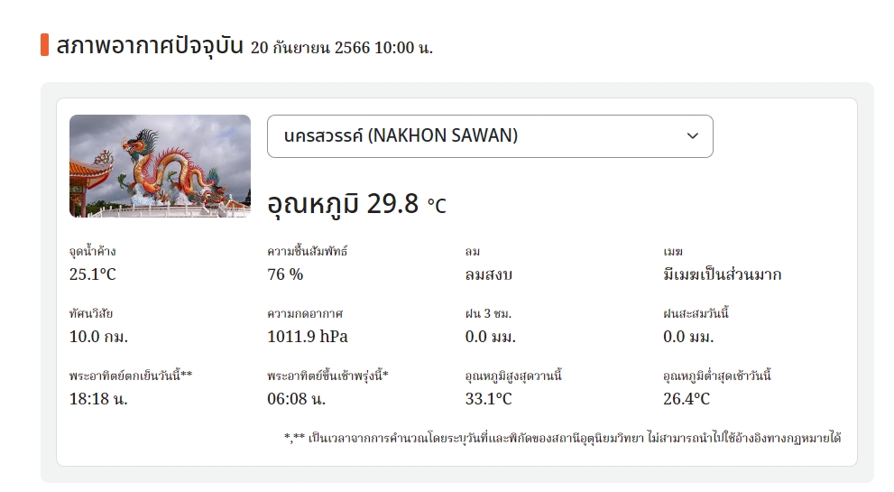 สภาพอากาศปัจจุบัน 20 กันยายน 2566 10:00 น.